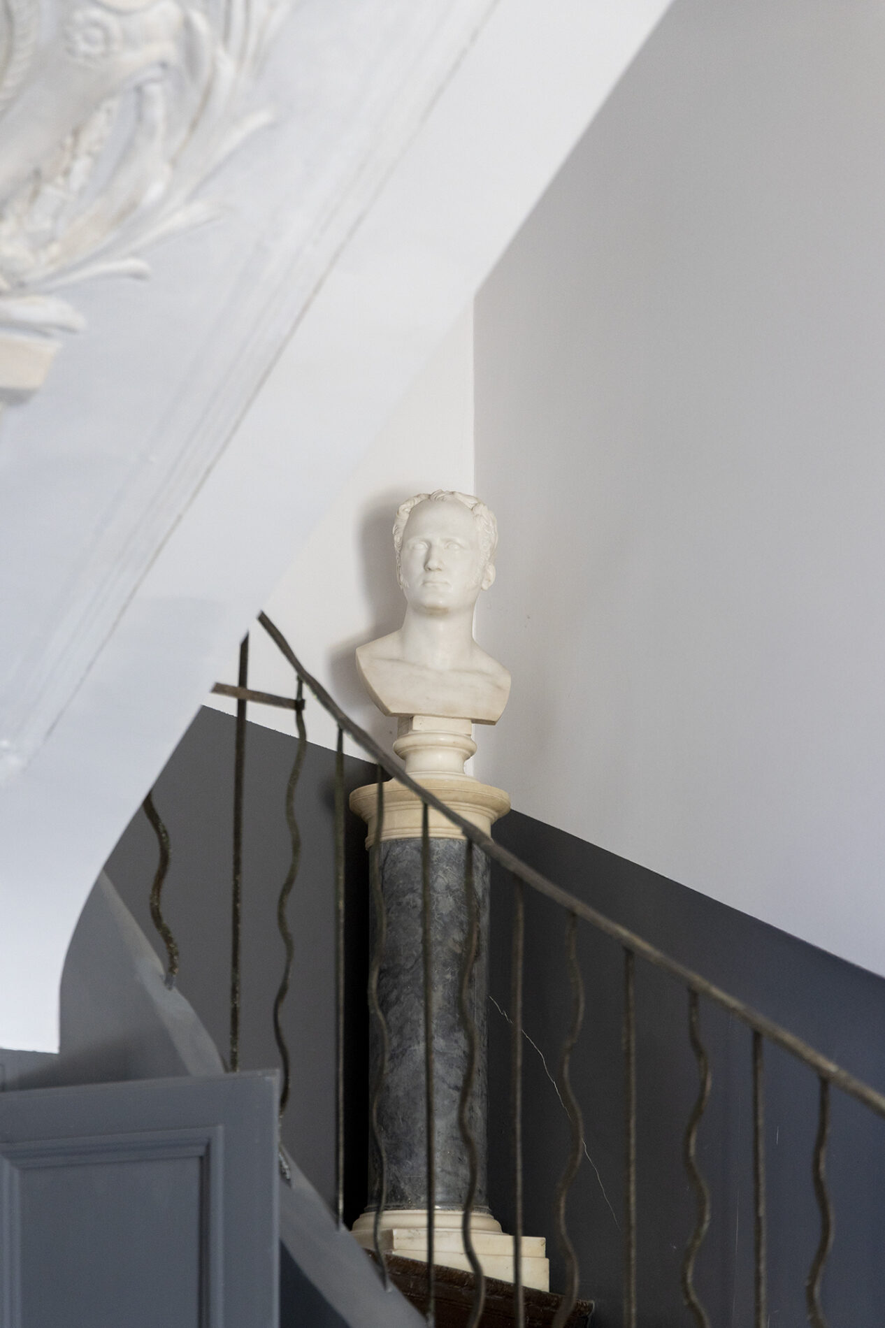 L’escaliers centrale amène à l’étage ou se trouvent trois salons et une suite, facilement reconfigurables en chambres supplémentaires avec salle de bains.
