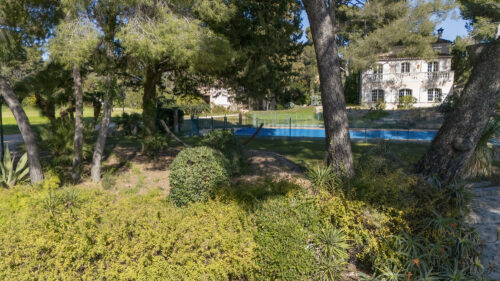 The landscaped grounds, of remarkable quality, comprise approximately 7,000 m² of flat land and 4,000 m² of terraced gardens sloping down towards the sea and Anse San Peyre. Rich in meticulously maintained native Mediterranean vegetation, the property boasts a large 14 x 7 meter swimming pool, a tennis court, a pétanque court, and expansive terraces overlooking the sea. Located along the coastal path, the property remains discreet and secluded, while benefiting from comprehensive amenities including automatic irrigation, a well, and a water reserve. Its private location, direct access to the sea, ideal exposure, and extensive grounds give this property a rare and exceptional heritage value on the Var coast.