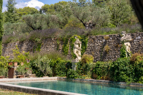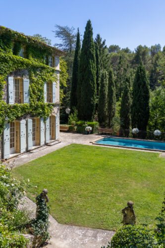 À moins de dix minutes du Cours Mirabeau (4 km), La Grange s’ouvre sur 4,5 hectares de nature soignée : une oliveraie, des fontaines, des statues couvertes de végétation, une chapelle, deux piscines et un court de tennis. L’ensemble respire la sérénité d’une Provence encore authentique, telle qu’aimaient la peindre Cézanne et ses héritiers.