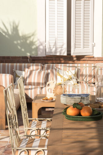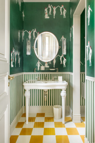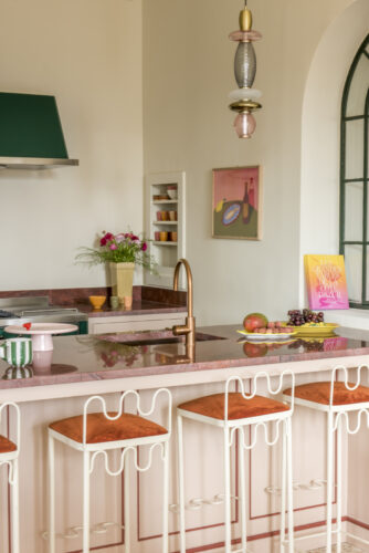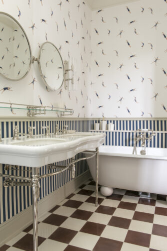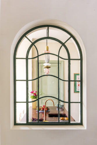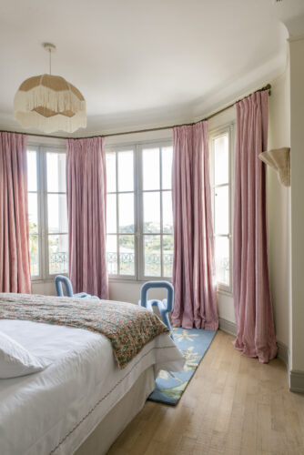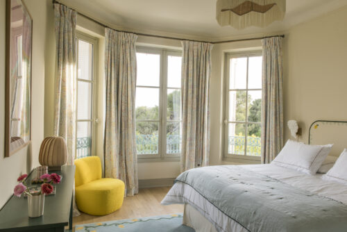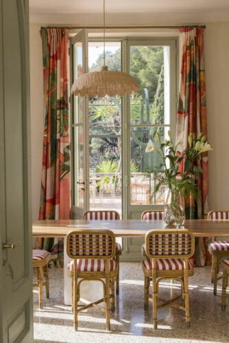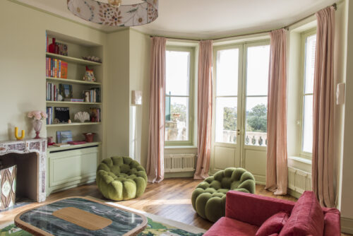 Respectueuse de l’âme du lieu, la rénovation menée par Céline et Alexandre a su conjuguer patrimoine et confort contemporain. Inspirée par les principes de l’Art Nouveau, la décoration met en valeur les formes organiques, les matériaux nobles et les couleurs historiques de la villa vert sauge et rose pâle subtilement réinterprétées. Motifs floraux, lignes délicates et touches graphiques évoquant l’univers maritime viennent créer une atmosphère à la fois douce, élégante et intemporelle.
