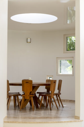 Pensée comme une maison familiale sur mesure, la villa est le fruit d’un dialogue étroit entre l’architecte et ses commanditaires. Elle incarne une vision alors résolument contemporaine : une architecture fluide, sans rigidité, où les volumes s’inscrivent naturellement dans le paysage et où la limite entre intérieur et extérieur s’efface.
