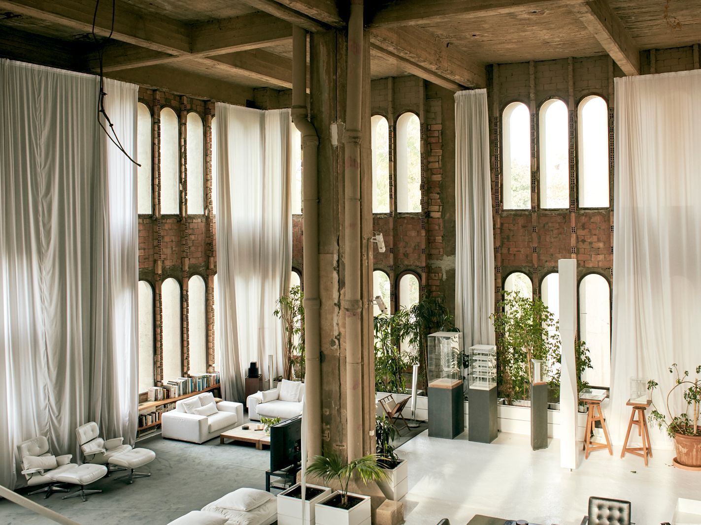 Dans cet espace, l’architecte a installé les bureaux de son agence, le Ricardo Bofill Taller de «Arquitectura». Les anciens silos et structures industrielles ont été transformés en studios d’architecture, salles de réunion et ateliers de travail. Les grandes ouvertures et la lumière naturelle rendent ces espaces propices à la réflexion et à la création.